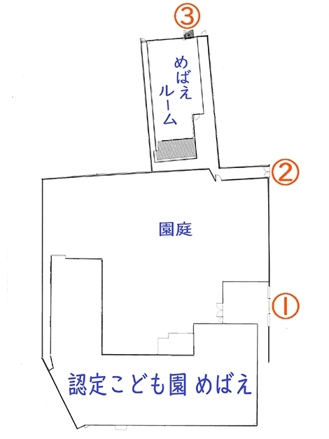 ※めばえルームをご利用される方は②のインターフォンを鳴らしてください。